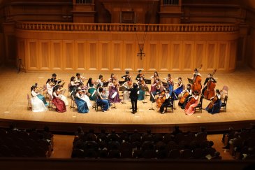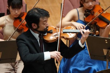 2日の弦楽合奏コンサートでは、1曲目に白井圭氏のソロと共に選抜のメンバーがシューベルト作曲「ヴァイオリンと弦楽のためのロンド イ長調 D438」を、2曲目は白井氏の指揮でチャイコフスキー作曲「弦楽セレナーデ ハ長調 Op.48」を演奏しました。チャイコフスキー作曲「アンダンテ・カンタービレ」のアンコールでコンサートを終了しました。小学生から社会人まで幅広い年齢のSTROANメンバーとアソシエイトメンバー31名がまとまりのある演奏を披露しました。