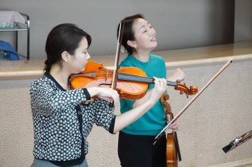 1日は午前中に公開レッスンを開催し、白井圭氏のヴァイオリンレッスンを3名のSTROANメンバーが、叶澤尚子氏のヴィオラレッスンを2名のメンバーが受講しました。どの受講生も技術や音楽的表現の助言を受け、演奏に磨きがかかり楽器の響きが増していく様子が印象的でした。