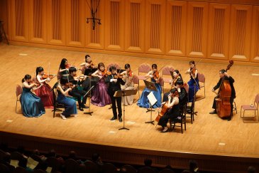 2日の弦楽合奏コンサートでは、1曲目に白井圭氏のソロと共に選抜のメンバーがシューベルト作曲「ヴァイオリンと弦楽のためのロンド イ長調 D438」を、2曲目は白井氏の指揮でチャイコフスキー作曲「弦楽セレナーデ ハ長調 Op.48」を演奏しました。チャイコフスキー作曲「アンダンテ・カンタービレ」のアンコールでコンサートを終了しました。小学生から社会人まで幅広い年齢のSTROANメンバーとアソシエイトメンバー31名がまとまりのある演奏を披露しました。