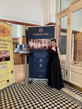 海外の現地開催コンクールに参加させていただきました。コンクールでは、出演者の方々も演奏を称えてくださったりとアットホームな雰囲気で驚きました。ウィーンにお友達もできて、この夏の素敵な思い出となりました。